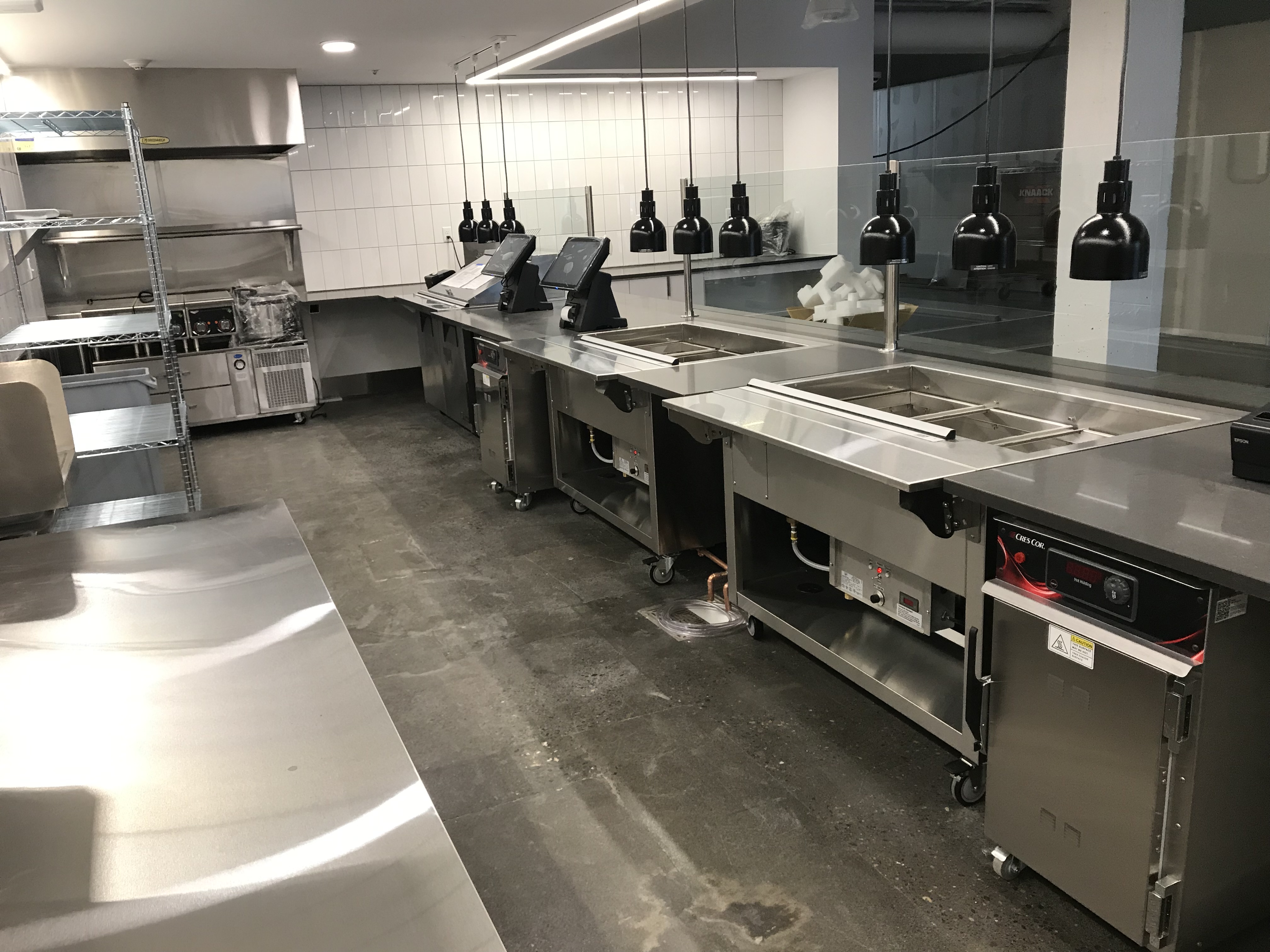 Transformation of the dining experience at the Adidas World Headquarters building was no small feat, requiring the addition of a new building between two existing structures. The Bargreen Ellingson Design + Build Team was brought on to assist in creating an updated cafe and dining area, two catering kitchens, and additional serving stations within the new building. Strategically adding separation between the two kitchen/servery areas offered greater operational flexibility, and the addition of holding cabinets, self-ordering kiosks, and a dish drop carousel reduced wait times for employees.