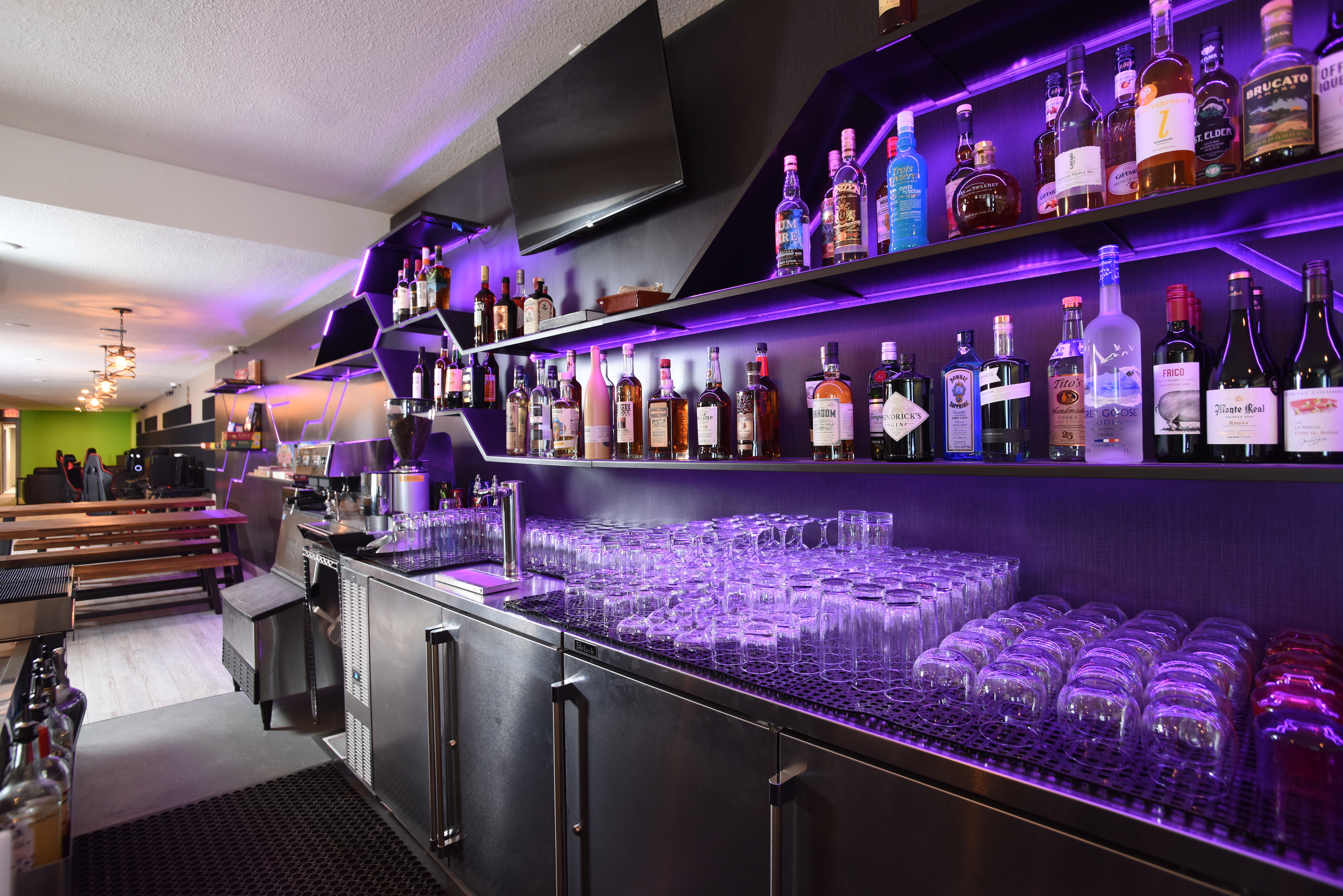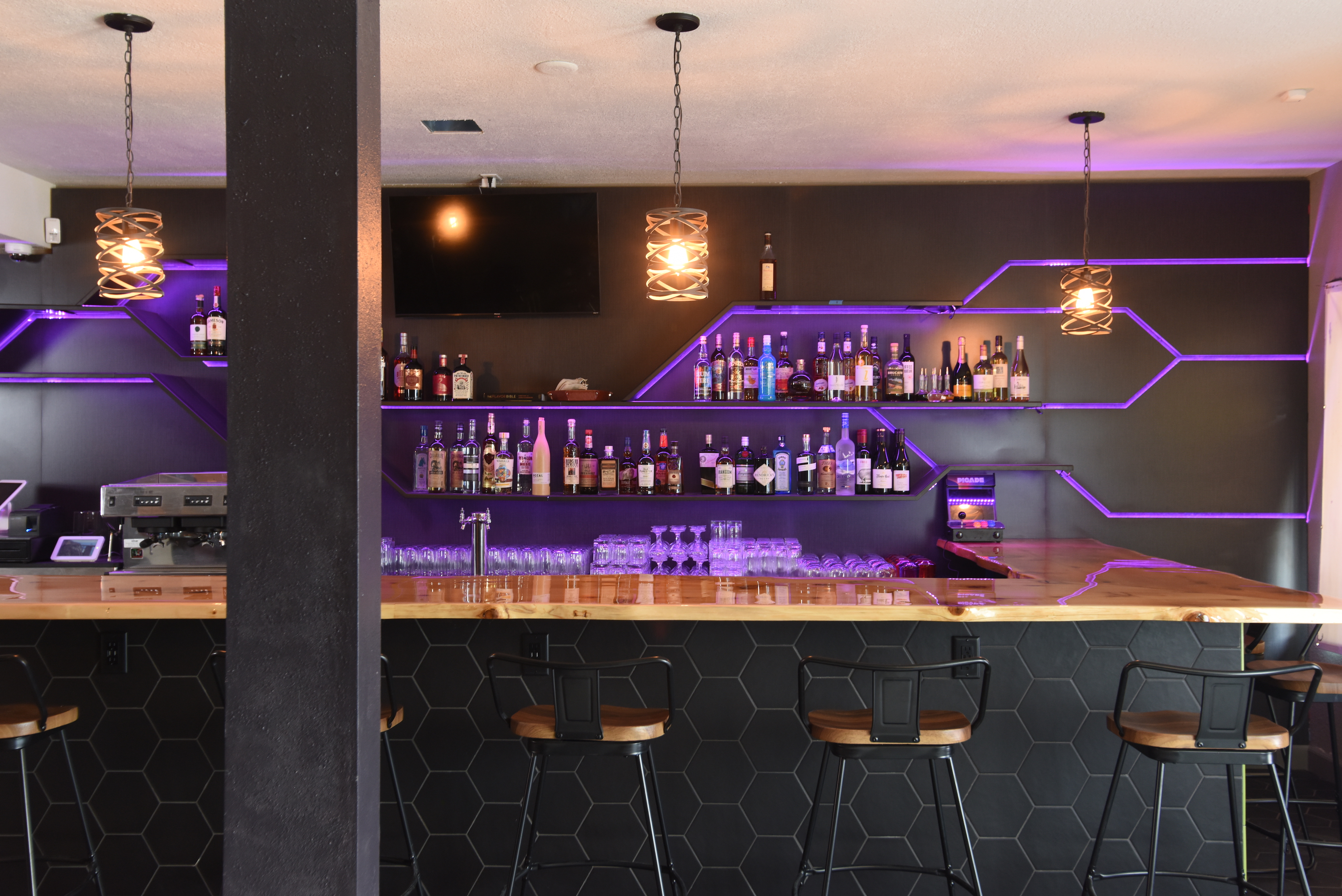 Epoch is the perfect blend of food, gaming, and creativity, making it Wenatchee’s ultimate gaming lounge. Offering virtual reality experiences, video games, and classic board games, Epoch focuses on crafting the perfect atmosphere for gaming enthusiasts of all kinds. The Bargreen Ellingson Design + Build team collaborated to translate the client's love of gaming and craft cocktails into an experiential space. Enlisting the expertise of Bargreen Ellingson's corporate chef Nick Musser, a menu was developed featuring delicious shareable plates prepared with ventless cooking technology to accommodate the available kitchen space. The design team worked endlessly to incorporate integral elements of gaming life into the concept, including a one-of-a-kind back bar wall emulating a functioning electrical circuit with custom fabrication from our sister company, Specialty Wood Manufacturing. This project culminated in a unique and stunning space that leaves guests inspired and entertained.