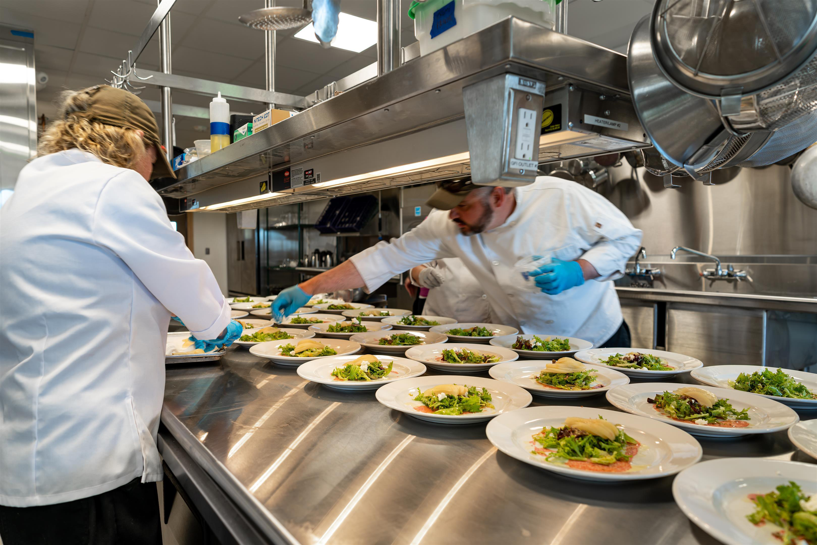 Madison Valley Ranch is an award-winning, fly-fishing lodge located outside of Ennis, MT. Working with HC Design & Consulting, Bargreen Ellingson revamped the kitchen ergonomics and equipment to better meet the demands of their custom operation. A stainless-steel center island and plating counter with overhead heating lamps were outlined for flow and function. Cooktops, wash stations, and mounted racks were installed around the perimeter for space savings and additional workstations.