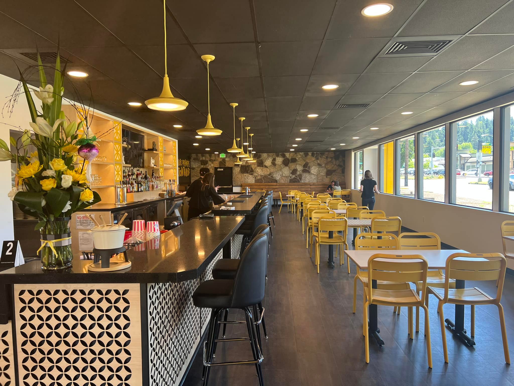 Pig & Turnip is a contemporary take on German-ish cuisine with a mix of old-world charm and a modern atmosphere. It started as a food cart operation in 2015 and has evolved into a freestanding location in 2022. In Bargreen Ellingson's second project with Shield Bistro owner Natasha Shield, this new quick-service restaurant is a high-volume, to-go operation, which includes a full bar that serves as the focal point of the dining room and features innovative robotic servers. With a walk-up ordering counter, the restaurant seamlessly flows into the bar with southern windows, allowing passersby a view into the inviting space.