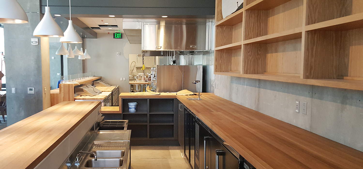 The first of three design-builds we started in 2018, PCC Bellevue, was planned in collaboration with the customer to develop a flow and layout that met their need to supply the public with daily selections made from scratch.